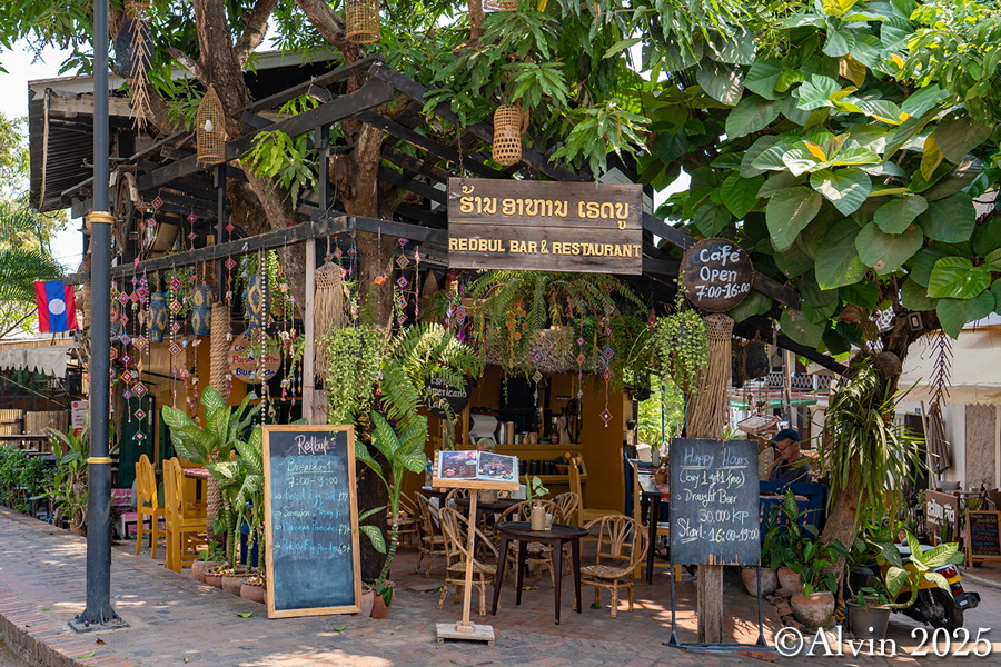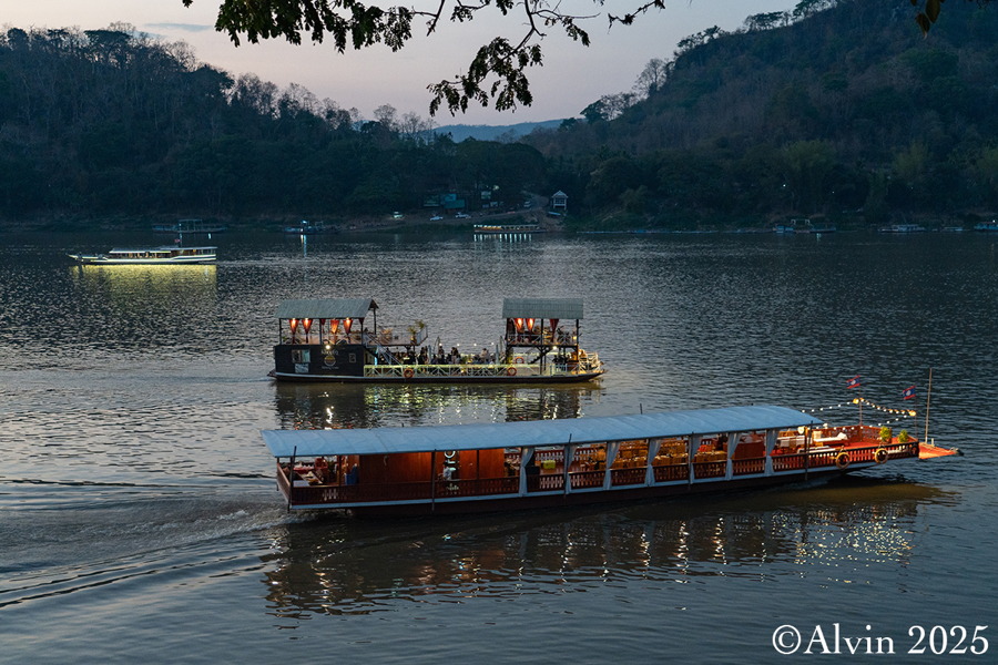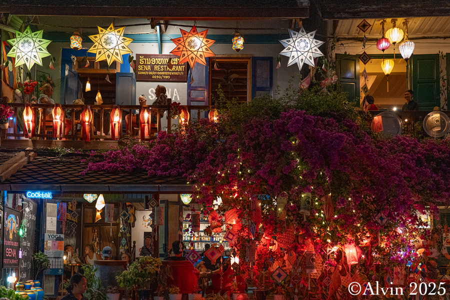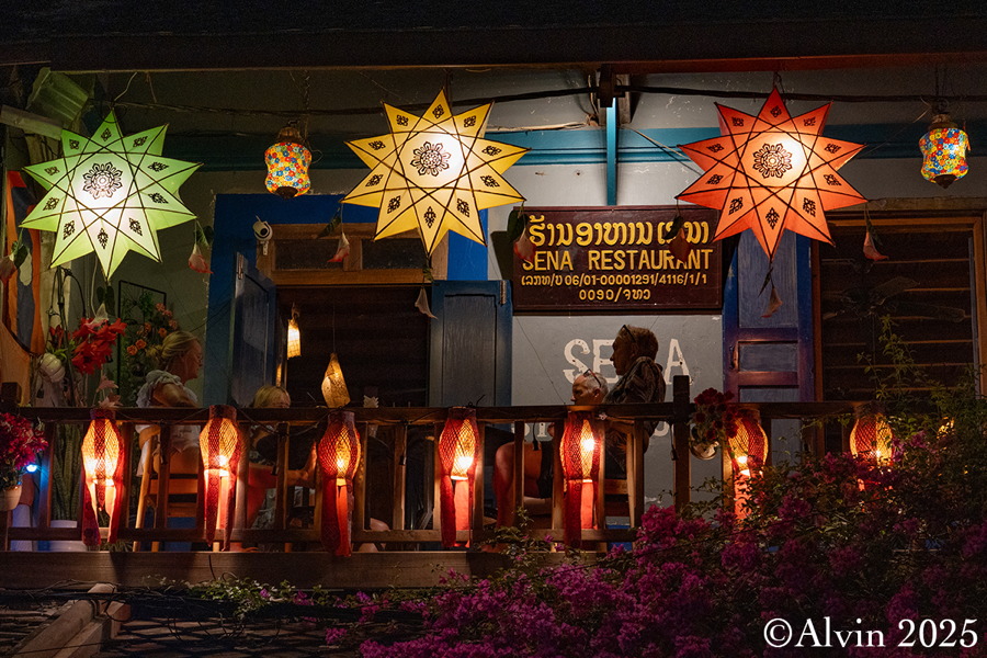 Am Abend verwandelt sich die Sisavangvong Road in Luang Prabang in einen