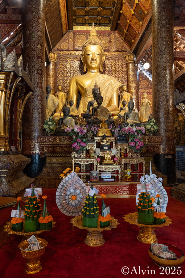 1. Wat Mai Suwannaphumaham: Dieser Tempel ist bekannt für seine beeindruckende goldene Fassade und die schöne Architektur. Er liegt zentral in der Altstadt und ist oft weniger überlaufen.