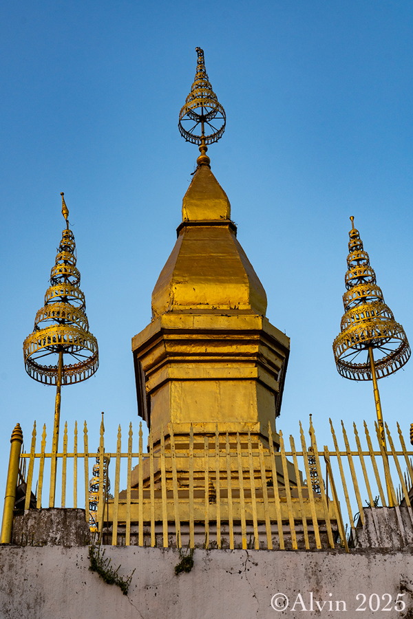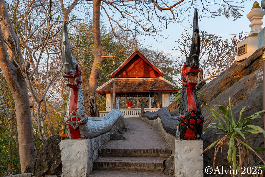 Der Phousi Hill (auch bekannt als Mount Phousi) in Luang Prabang ist ein bedeutender und beliebter Aussichtspunkt sowie ein spiritueller Ort in der Stadt. Der Hügel befindet sich im Herzen der Altstadt und bietet einen atemberaubenden Blick auf Luang Prabang, den Mekong-Fluss und die umliegende Landschaft.