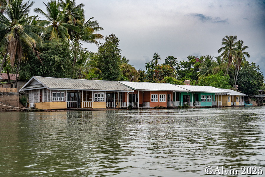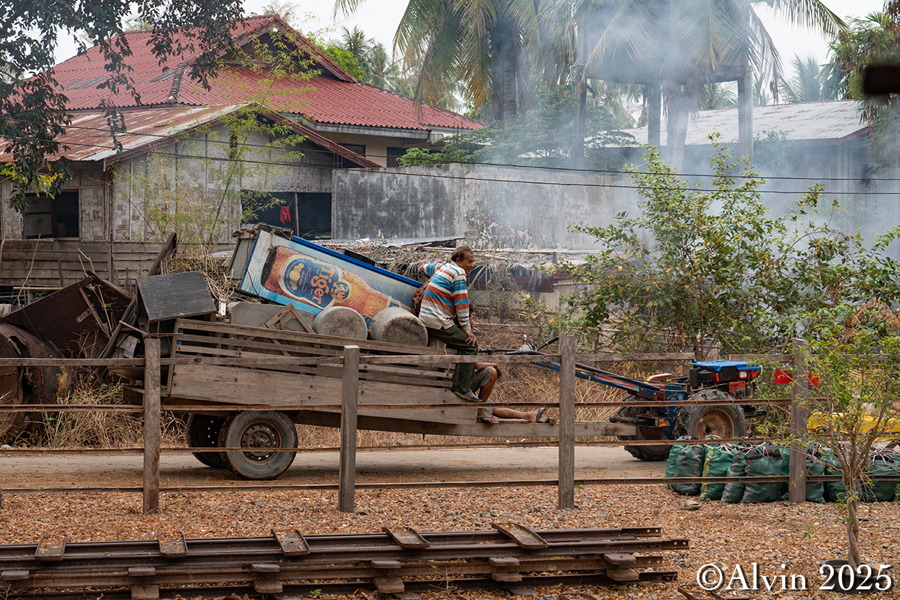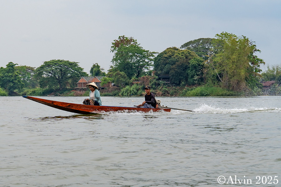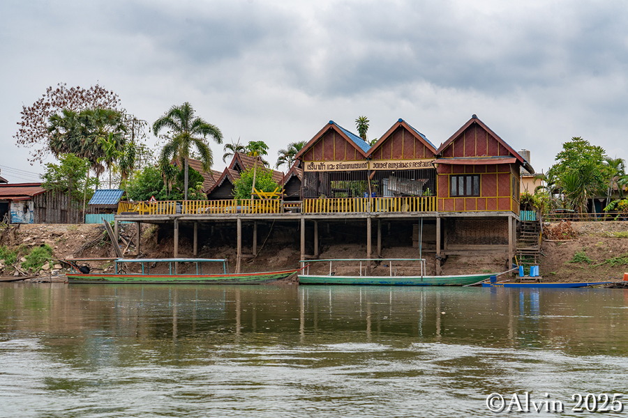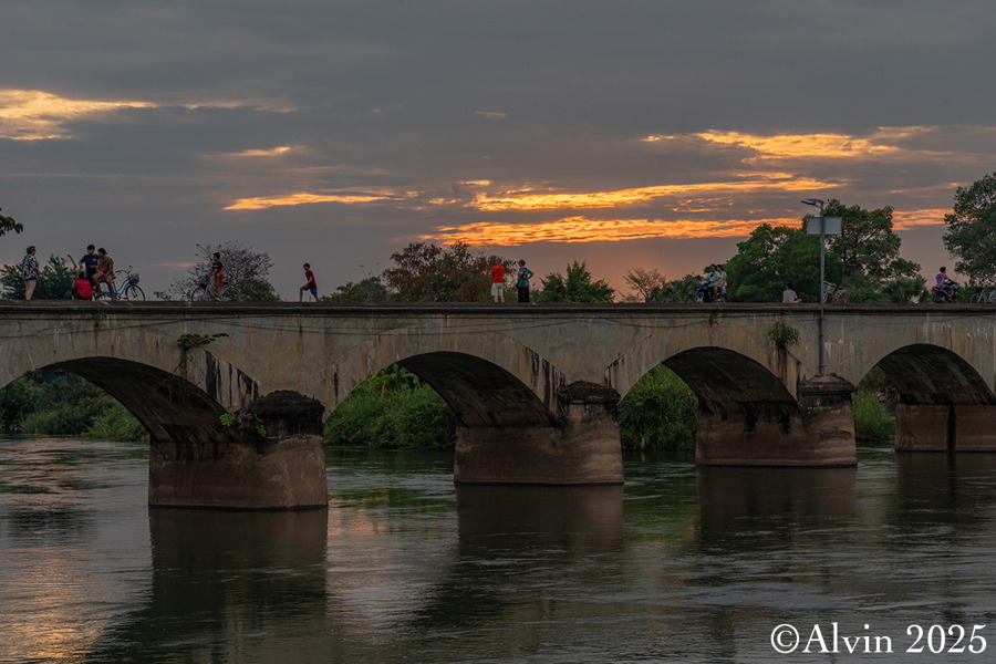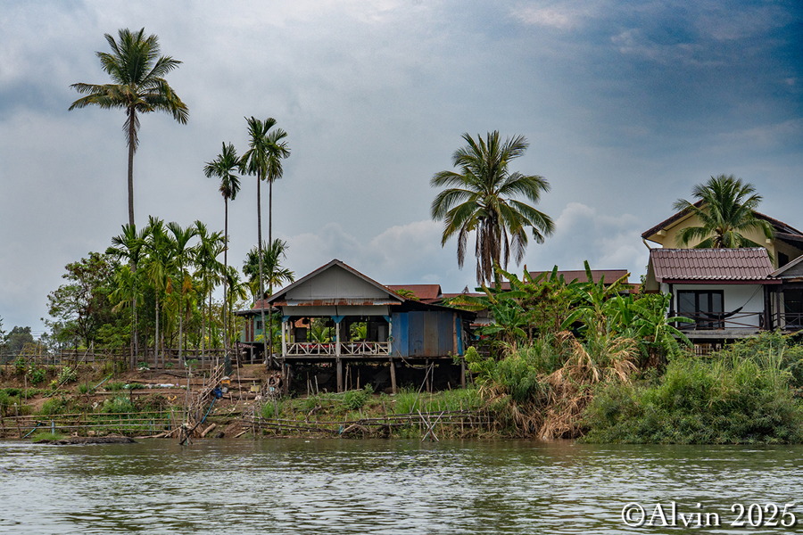 Nach einem Frühstück holte uns ein Minibus vom Hotel ab und brachte uns auf einer Strecke von etwa 140 km nach Nakosong. In der tropischen Flusslandschaft liegen circa 4.000 Inseln. Der Mekong erreicht hier an der Grenze zu Kambodscha seine größte Breite von beeindruckenden 14 Kilometern. Es ist ein Ort, an dem die Natur in ihrer vollen Pracht erstrahlt und wo man das Gefühl hat, in eine andere Welt einzutauchen. Ein Longboot brachte uns zu der Insel Don Khon und wir quartierten uns im Nongsak Guest House ein. Danach erkundeten wir die nähere Umgebung, darunter die alte Eisenbahnbrücke und das Railway Memorial, wo eine historische französische Lokomotive ausgestellt ist.