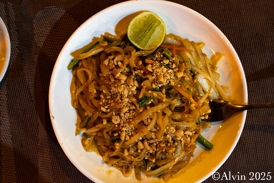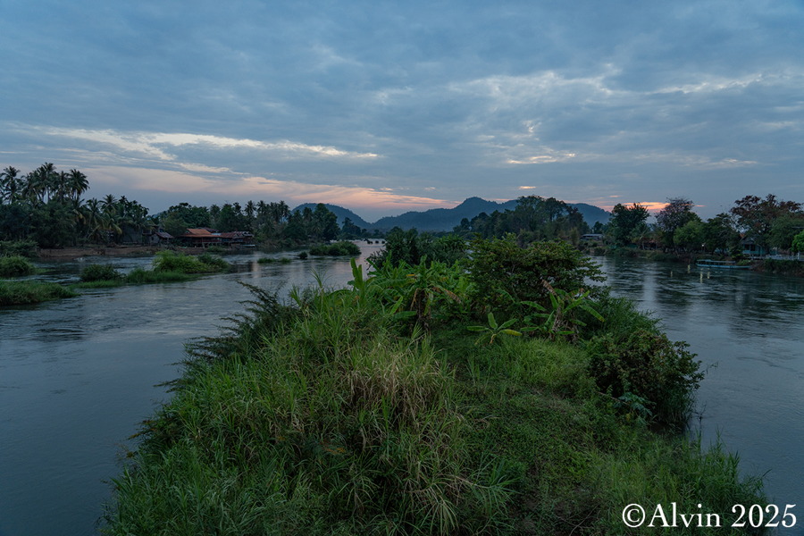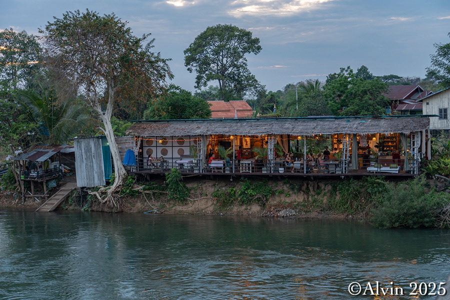 Heute war der Himmel über Don Khon teilweise bewölkt, was unseren Plan für einen spektakulären Sonnenuntergang etwas trüben sollte. Das Abendessen im Khaemkong Restaurant war ebenfalls ganz in Ordnung. Aufgrund der Dunkelheit konnten wir die herrliche Aussicht dort leider nicht mehr genießen, aber das Essen hat trotzdem gut geschmeckt. Es war ein angenehmer Abschluss eines ereignisreichen Tages.