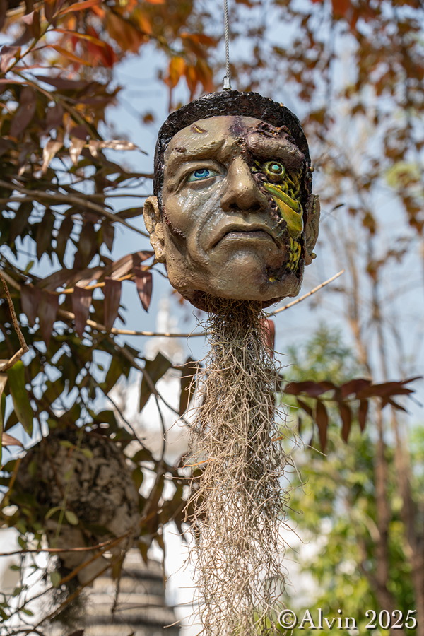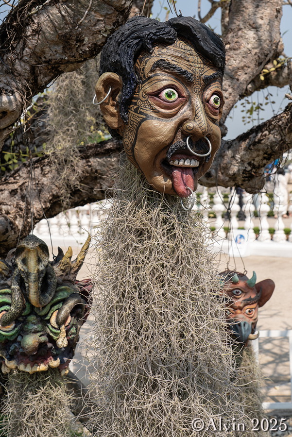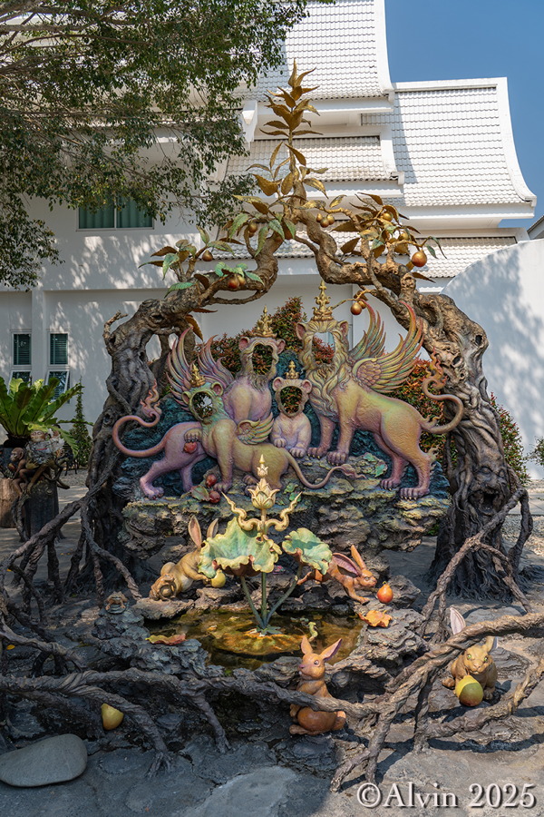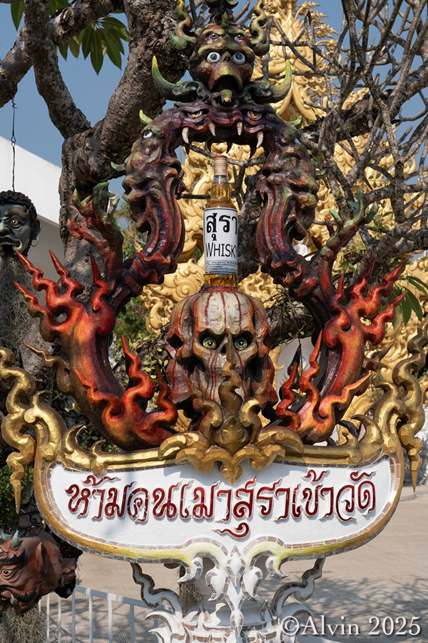 Der Tempel enthält viele symbolische Elemente, darunter Skulpturen, die verschiedene Aspekte des menschlichen Lebens und der buddhistischen Lehren darstellen. Besucher können auch moderne kulturelle Referenzen in den Kunstwerken finden.