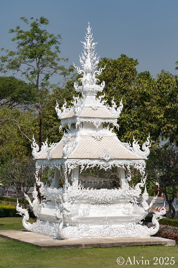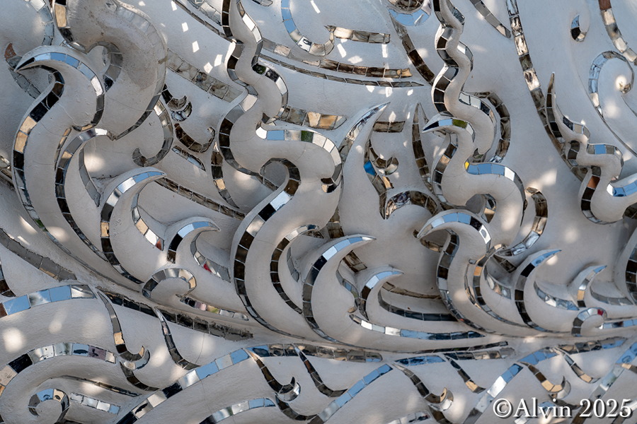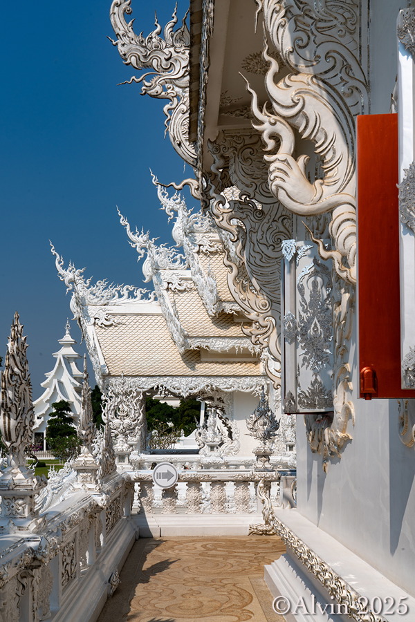 Der Tempel ist bekannt für seine strahlend weiße Farbe, die mit Glasstücken verziert ist, was ihm ein funkelndes Aussehen verleiht. Die weiße Farbe symbolisiert Reinheit und die Glasstücke stehen für die Erleuchtung.