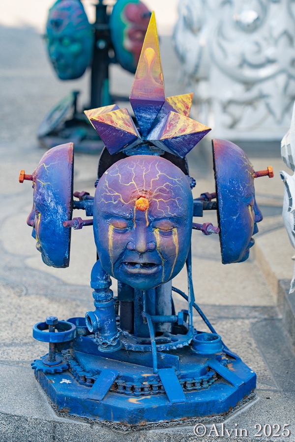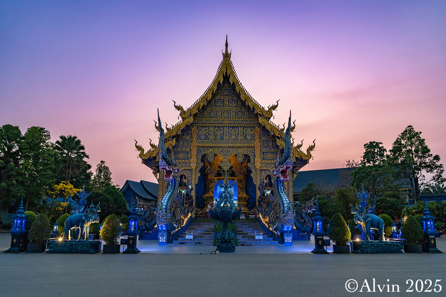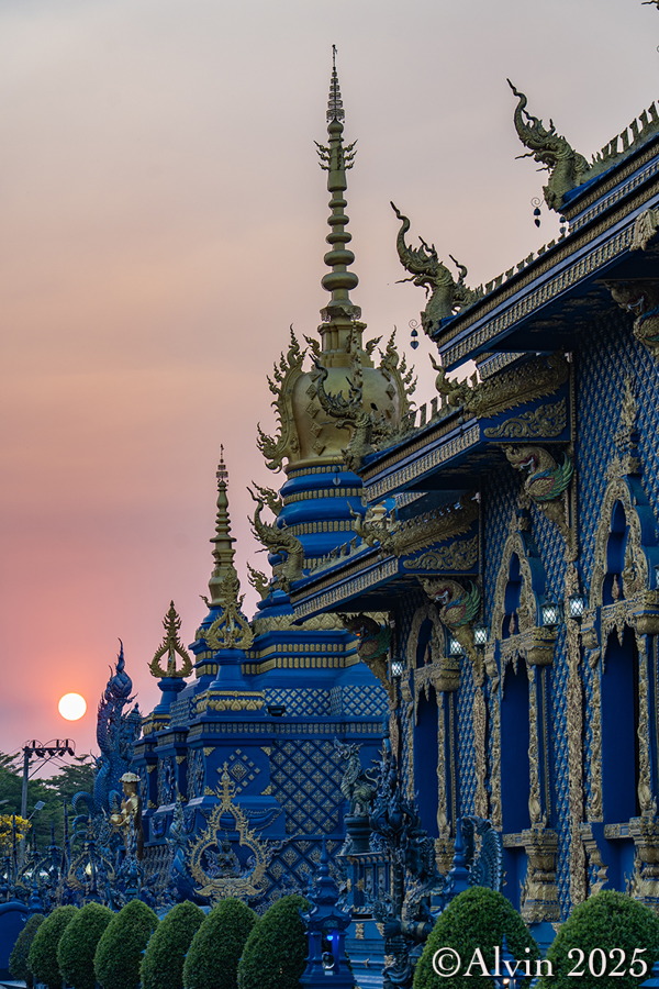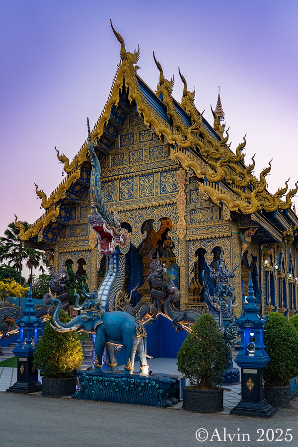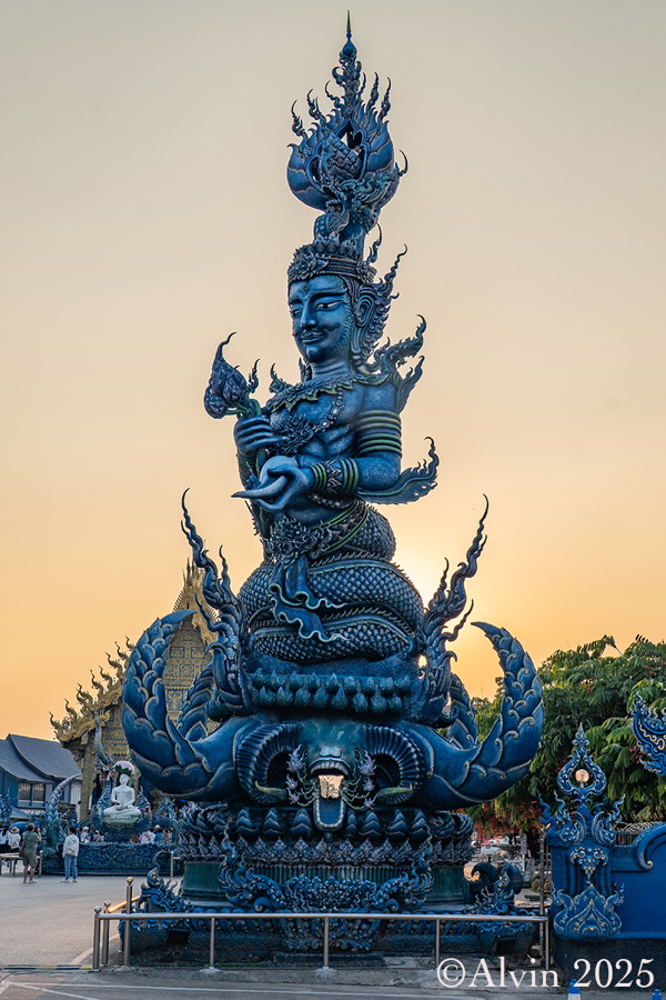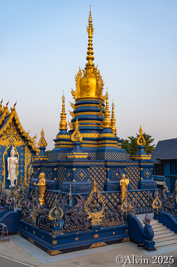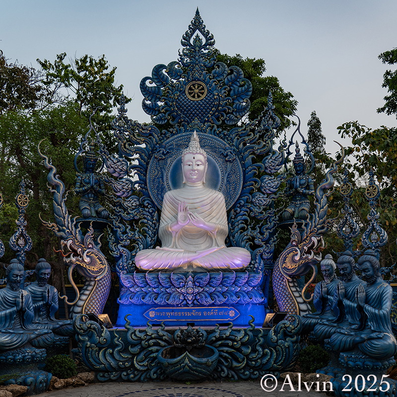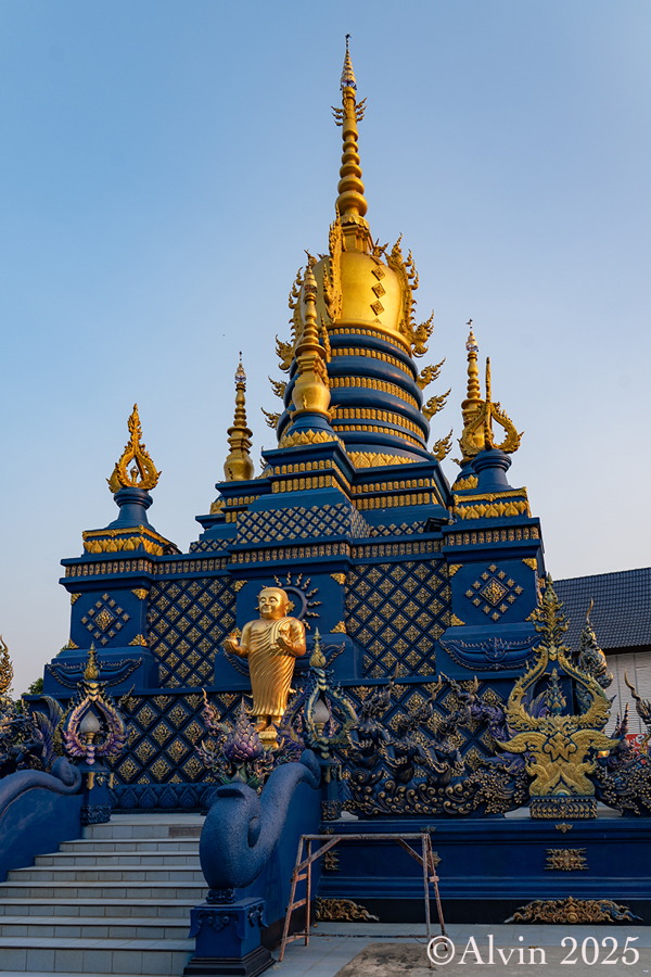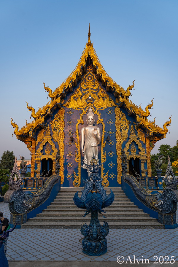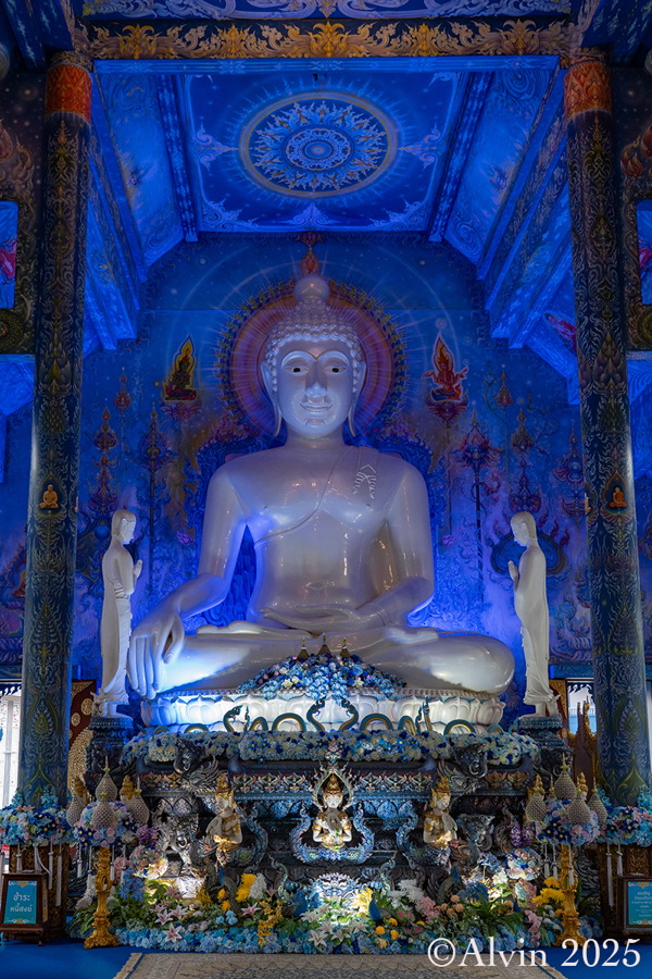 Der Blaue Tempel hat eine andere Atmosphäre als der Weiße Tempel, vermittelt aber ebenfalls spirituelle Botschaften. Die blaue Farbe steht für Frieden und Harmonie.
