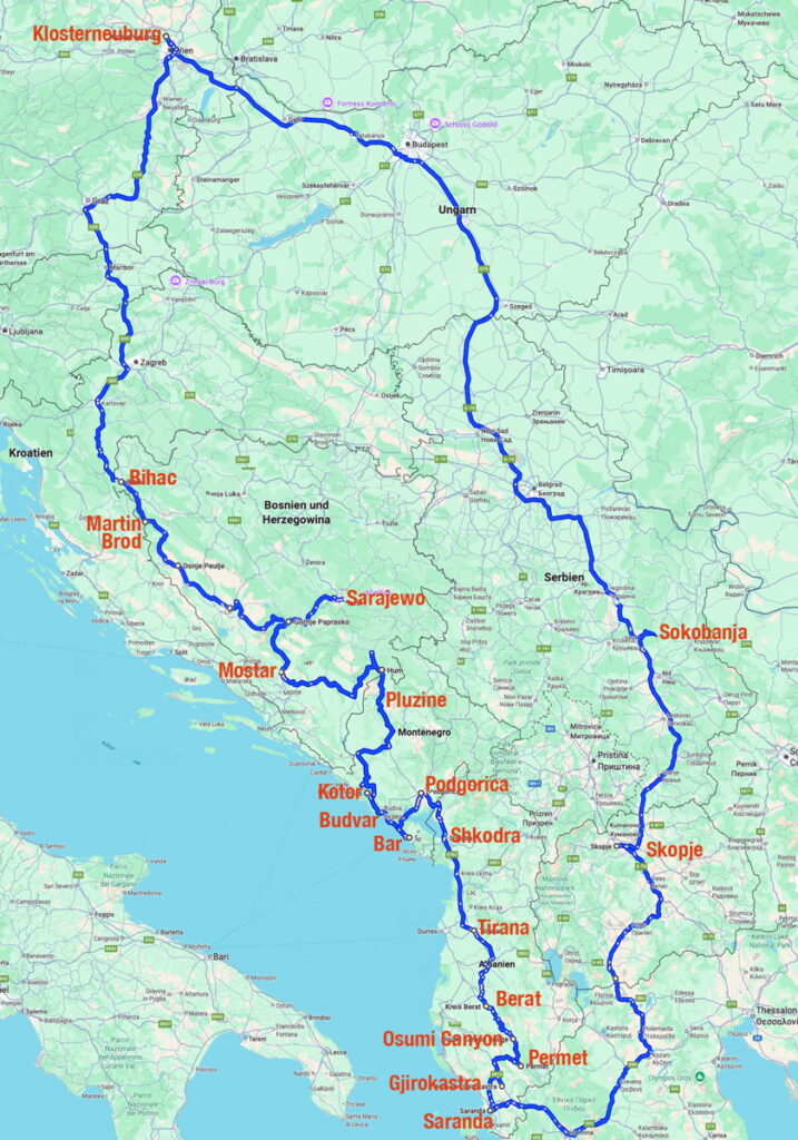Eine ca. 4000 km lange Rundreise durch den Balkan mit Stopps in Bosnien & Herzegowina, Montenegro, Albanien und Serbien.