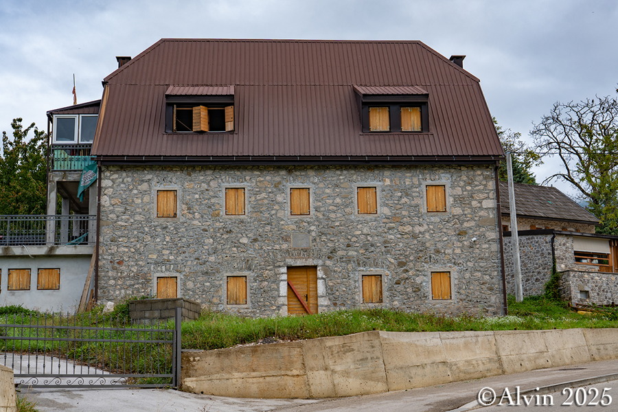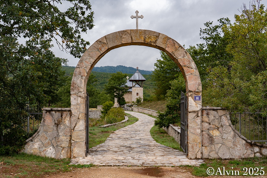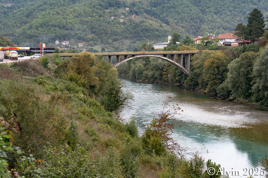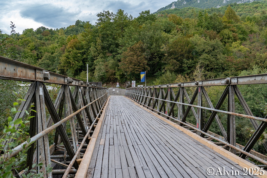 Die Grenze Hum zwischen Bosnien und Montenegro besteht aus einer historischen einspurigen Holzbrücke.