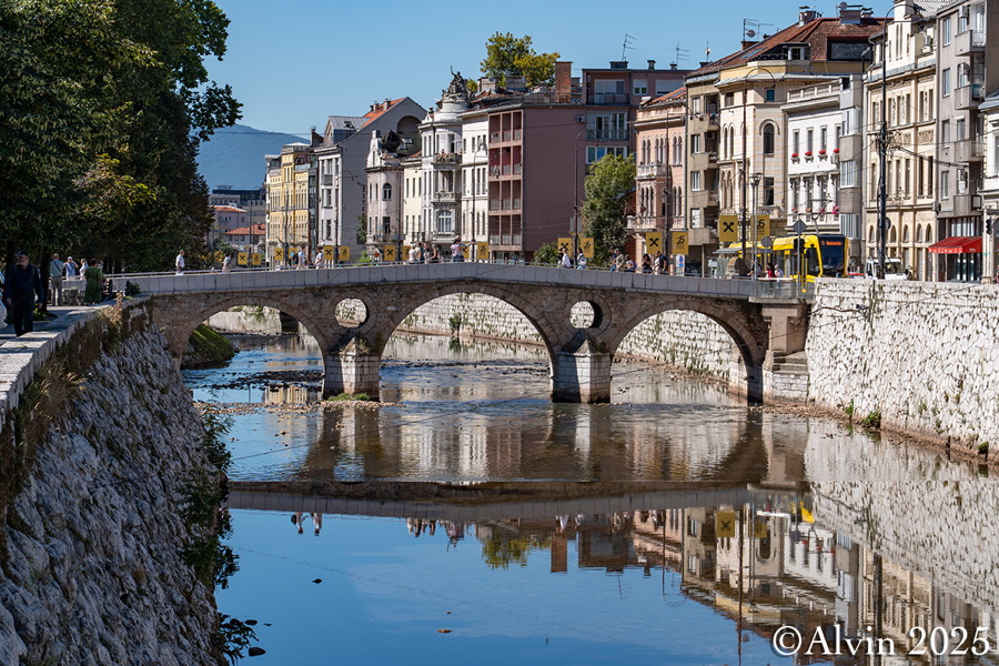 Sarajevo, die Hauptstadt Bosniens und Herzegowinas, liegt eingebettet in das dichte Bergland des Dinars. Die Stadt verbindet osteuropäische Kultur mit osmanischer Geschichte und einem lebendigen, multikulturellen Flair. Umsäumt von Balkantälern, zeigt sich das Stadtzentrum mit einer Mischung aus osmanischen Basargassen, viktorianischer Architektur und modernen Gebäuden. Die Altstadt, Baščaršija, lockt mit engen Gassen, Händlern, Gewürzen und Kaffeehäusern, während die Baudekorationen der älteren Kirchen, Synagogen und Moscheen die historische Vielfalt widerspiegeln.