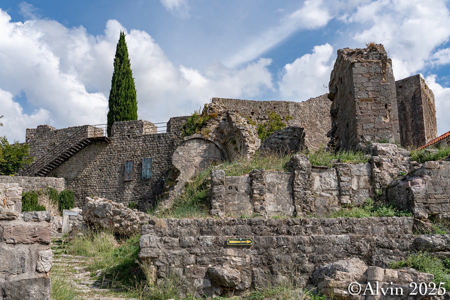 Stari Bar ist eine historische Ruinenstadt in Montenegro, die sich auf einem grünen Plateau über dem heutigen Bar-Tal erhebt. Die Überreste der einst bedeutenden osmanischen und venezianischen Siedlung umfassen Walls, Türme, Grabmäler und die stillgelegte Kirche St. Nikola, wodurch eine eindrucksvolle Atmosphäre zwischen Gras, Olivenhainen und kargen Steinformationen entsteht.