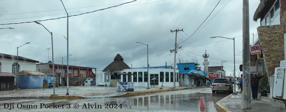 Es war bewölkt und hatte nur knapp 20 °C, als wir am Morgen aufwachten. Nach einem entspannten Frühstück in unserer „good Vibes only“ Unterkunft machten wir uns auf den Weg nach Chiquilá, das 160 km entfernt an der Nordküste von Yucatan liegt, wo wir eigentlich zur Insel Holbox übersetzen wollten. Doch schon bald zogen dunkle Wolken auf und es sah nach einem Sturm aus. Erst dort checkten wir unsere emails und erfuhren, dass unsere Reservation auf Holbox wegen Sturmwarnung gecancelt wurde.