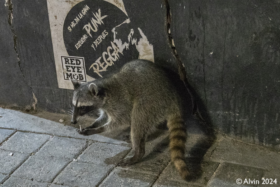 Die laute Musik von der Roof Bar in der Nähe meines Zimmers klingt wie eine Horde fröhlicher Waschbären, die eine spontane Tanzparty auf meinem Dach veranstalten. Als ich den Keiler vor dem Lokal fragte, wie lange diese schreckliche Discomusik noch dauern wird, antwortete er mit einem leichten „Sorry, bis 3 Uhr morgens!“ Es war gerade Mitternacht und ich beschloss, die Zeit zu nutzen, um noch in der halb ausgestorbenen Stadt noch ein paar Fotos zu machen. Die Waschbären, die offensichtlich genug von der lauten Musik hatten, beschlossen, sich auf Nahrungssuche in der Fußgängerzone zu begeben. Dort stießen sie auf Mistsackerl und begannen, diese neugierig zu untersuchen. Mit ihren geschickten Pfoten und scharfen Krallen zerlegten sie die Sackerl und suchten nach Essbarem. Es war ein skurriles Bild, wie die Waschbären mitten in der Nacht in der Fußgängerzone herumstöberten und nach Leckereien suchten. 3 min vor 3h kehrte auf einmal Totenstille ein und ich konnte endlich pennen gehen.