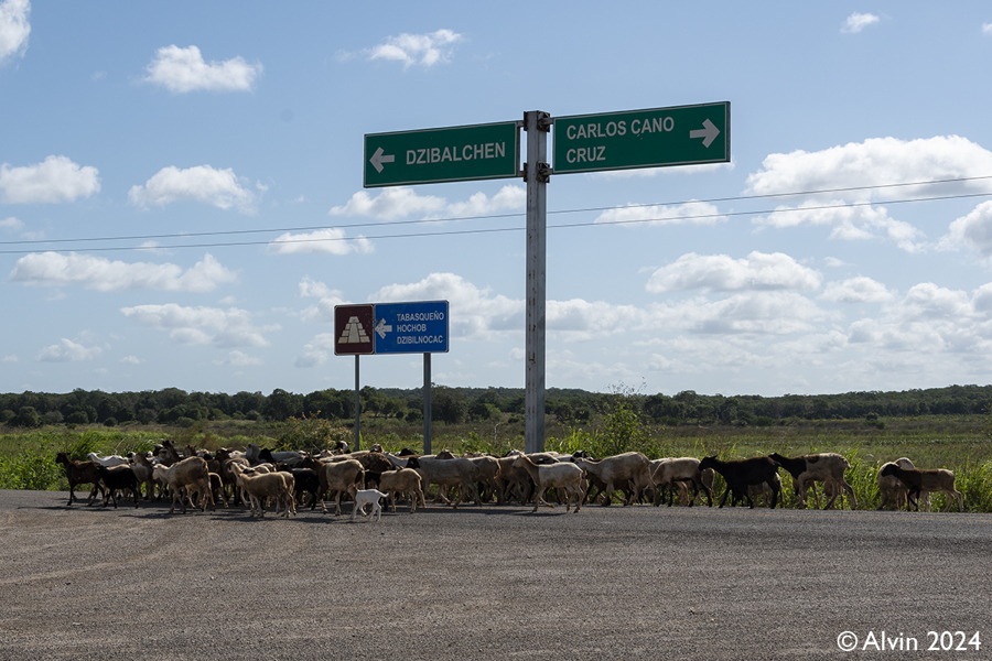 Wir erfuhren schon gestern, dass Calakmul, die Ruinen mitten im Dschungel mit einem mühsamen 2-stündigen Anfahrtsweg, die momentan nur vormittags geöffnet sind, heute geschlossen sind. Daher beschlossen wir, über Edzná nach Campeche zu fahren.