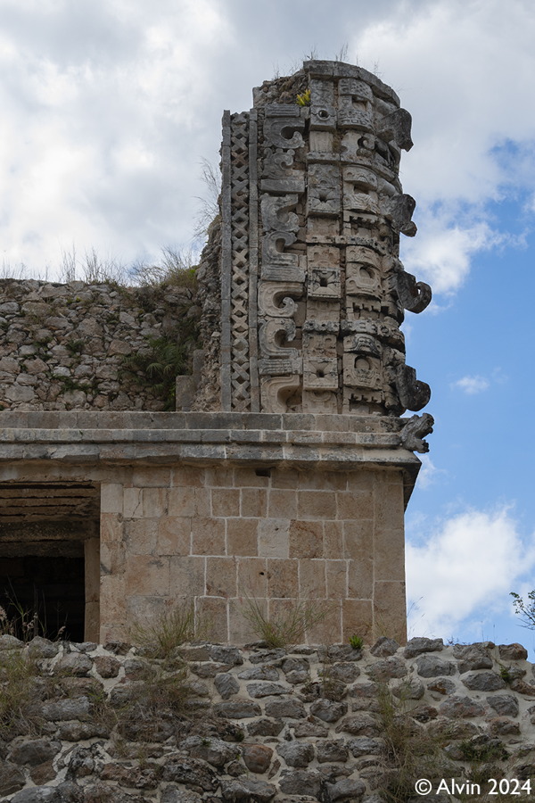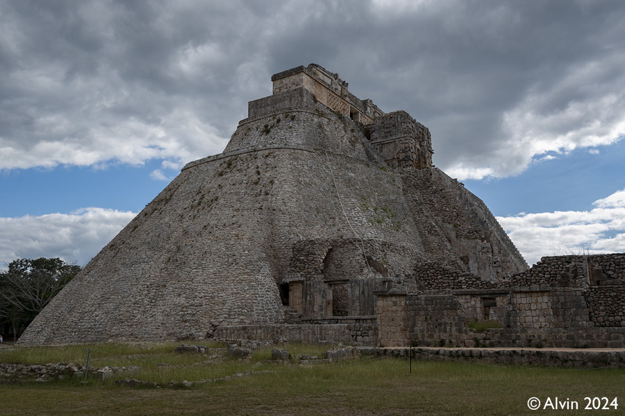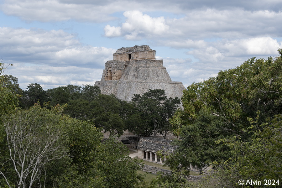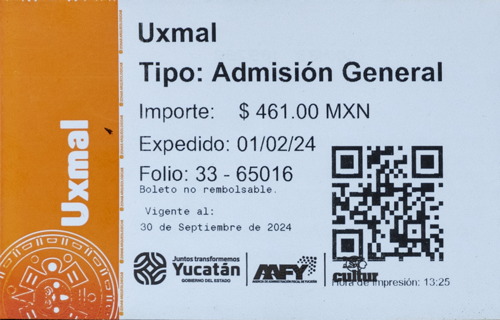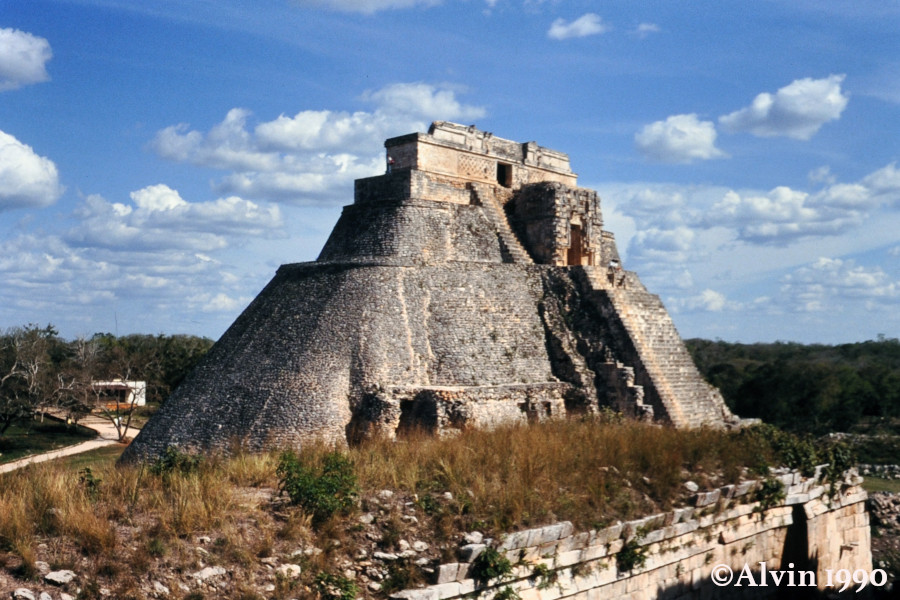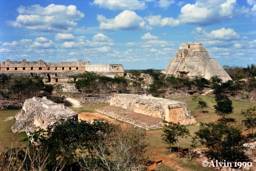 Uxmal sind die Ruinen einer ehemals großen und kulturell bedeutenden Maya Stadt, die ihre Hochblüte im 9. und frühen 10. Jahrhundert n. Chr. erlebte. 1990 konnte man noch überall raufklettern. Heutzutage zahlt man 110 Pesos fürs Parken, 95 Pesos für den Eintritt und nochmals 461 Pesos für die Ruinen und ich konnte das Foto von 1990 nicht nachfotografierten da man nirgends rauf darf. Die Kamera muss man am Eingang verstecken, sonst kostet das Fotografieren nochmals 50 Pesos. Ausserdem gibts dort noch ein Planetario (180 Pesos) und ein Schokoladen Museum (190 Pesos), die wir aus Zeitgründen ausgelassen haben.